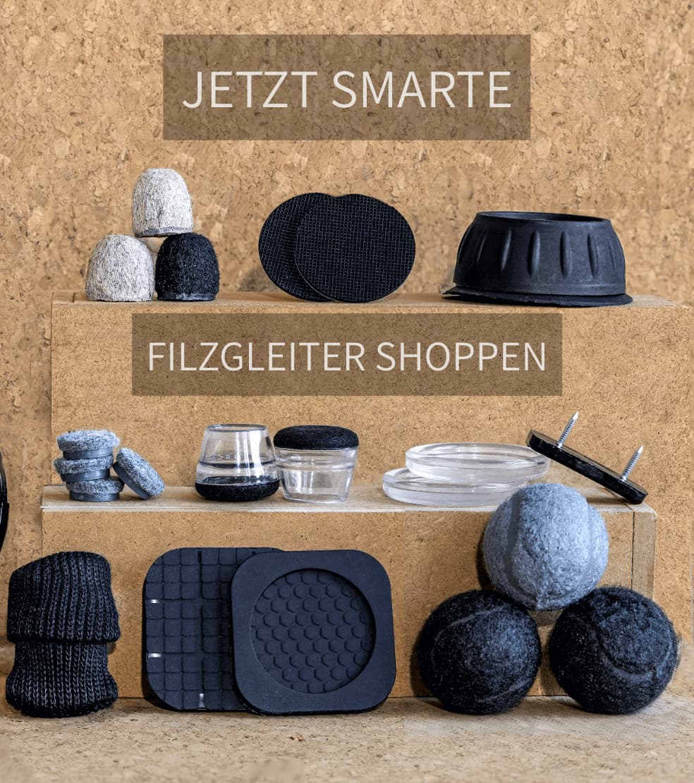 Kunststoff-Möbelgleiter sind robust und schützen Böden vor Kratzern und Abnutzung. Sie sind besonders für den Außenbereich geeignet, da sie feuchtigkeitsbeständig sind. Auf Teppichen verbessern sie zudem die Gleitfähigkeit von Möbeln. Für empfindliche Innenböden sind jedoch Filzgleiter selbstklebend meist die bessere Wahl.