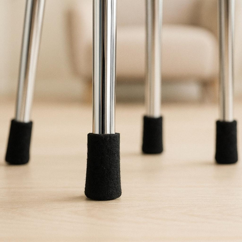 • Stuhlbeinkappen aus Silikon mit filz. Die Kappen sind wegen ihres Aussehens beliebt und von hoher Qualität. Nicht zuletzt wirkt das Silikon als effizienter Schalldämpfer.