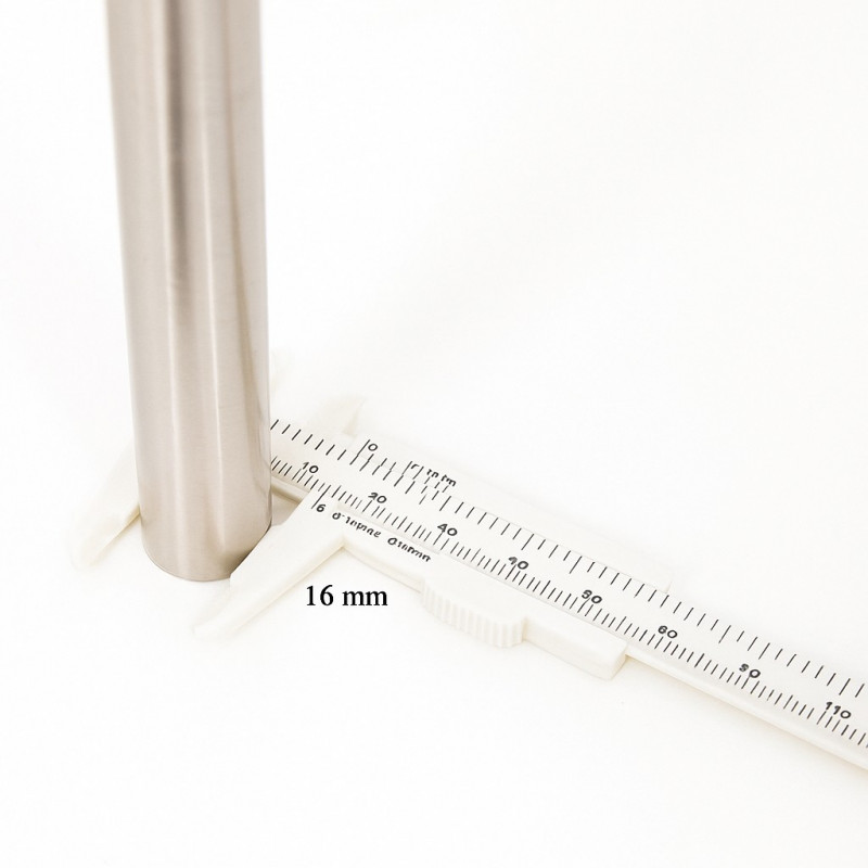 Messschieber aus Kunststoff für Stuhl- und Möbelbeine. Weißer Kunststoff, misst bis zu 80 mm.
